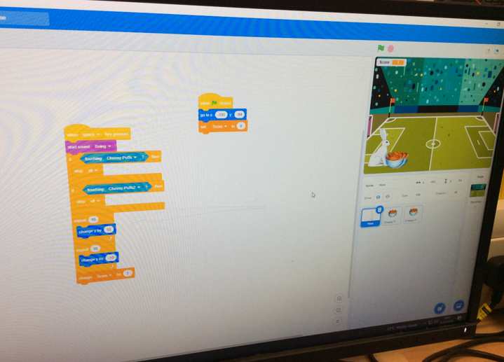 By the end of the 5 week process, each partnership had a working game and everyone took turns to play each others game and we all thoroughly enjoyed the process. Lots of people went and tried Scratch at home and shared other code that they had tried. Watch the video to see a finished game.