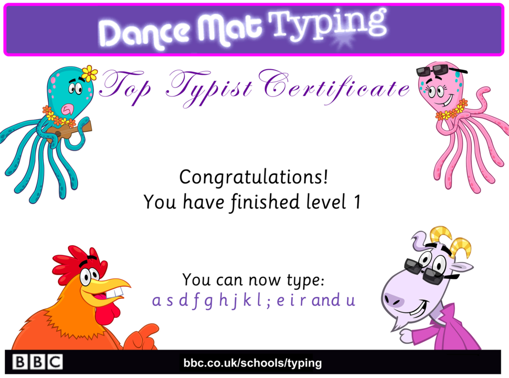 First we practised our typing skills using the BBC Dance Mat, trying to use all our fingers rather than just two!! We really enjoyed the website and loved the silly films that went with them! Everyone earned a certificate for their hard work.
