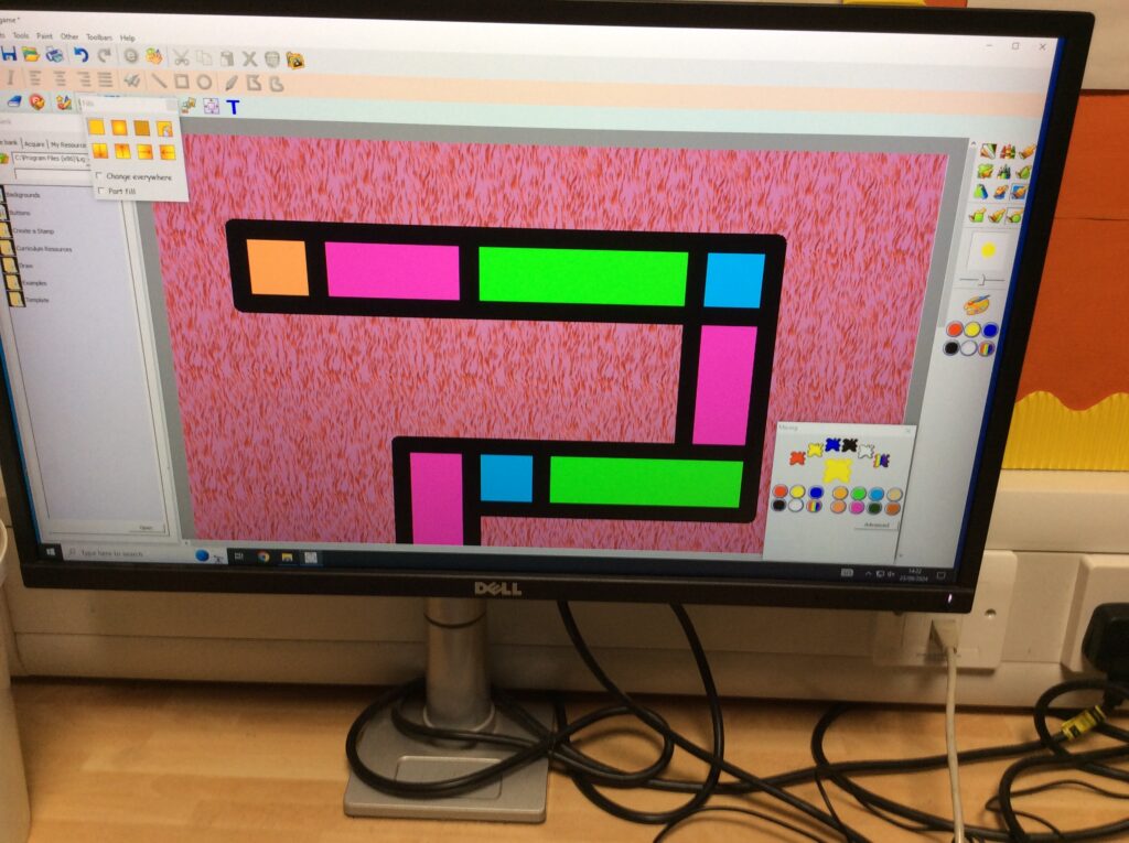 In the next session they drew their board out in Textease, amending their brush to ensure the lines weren’t too thick and using the snap to grid function so their game spaces were all level.