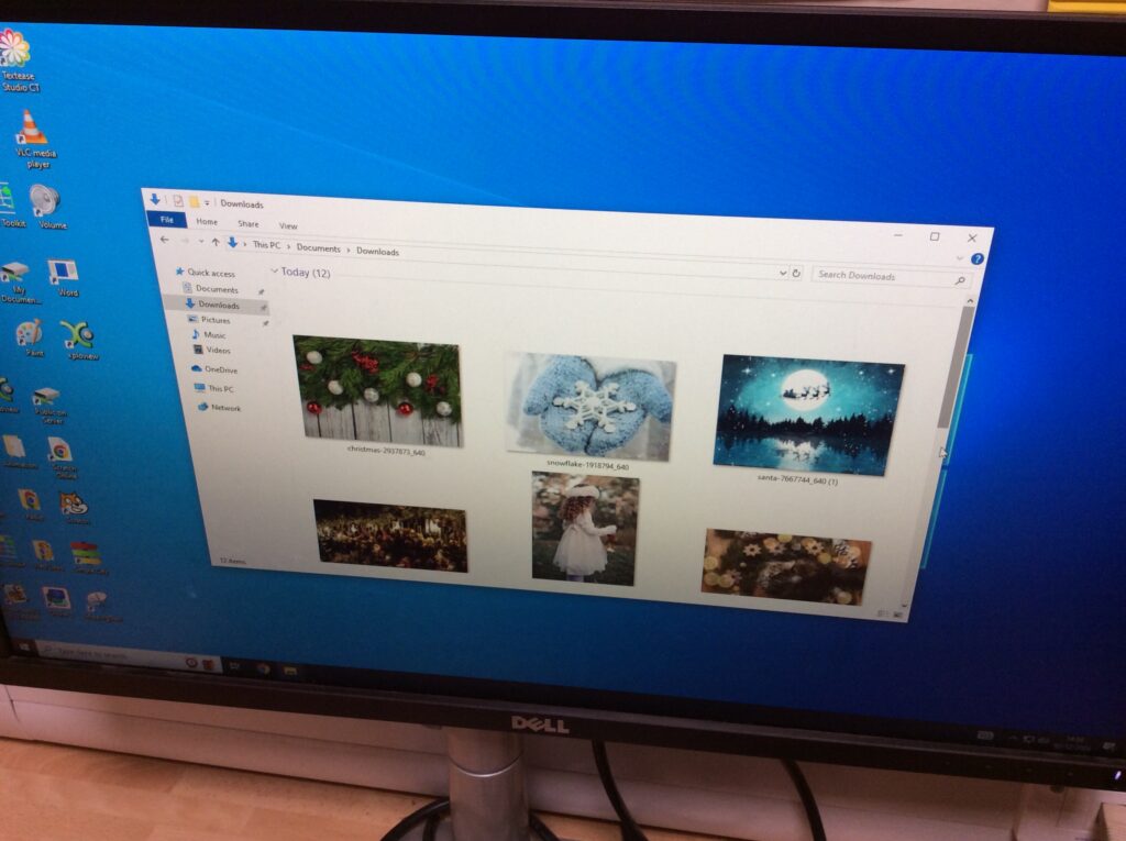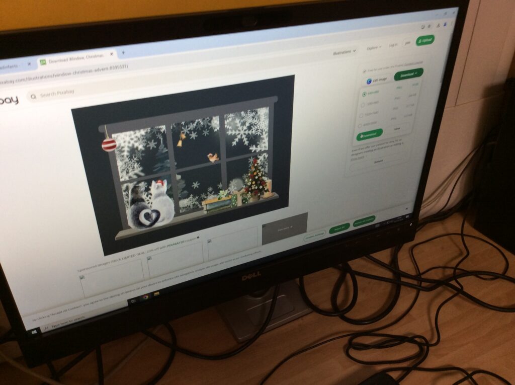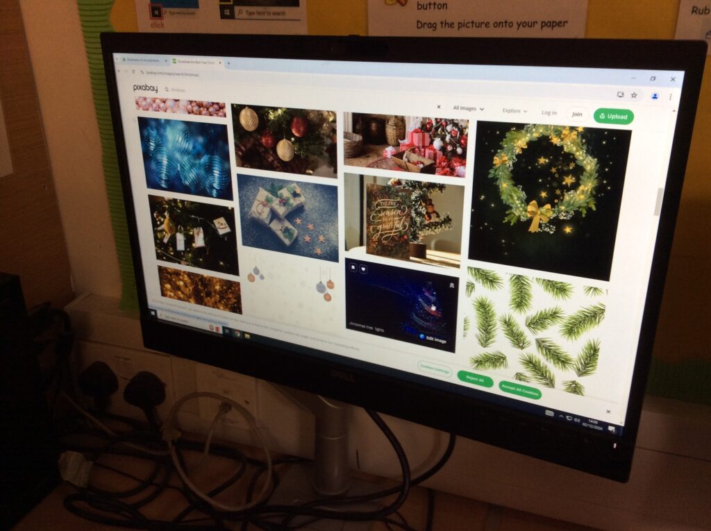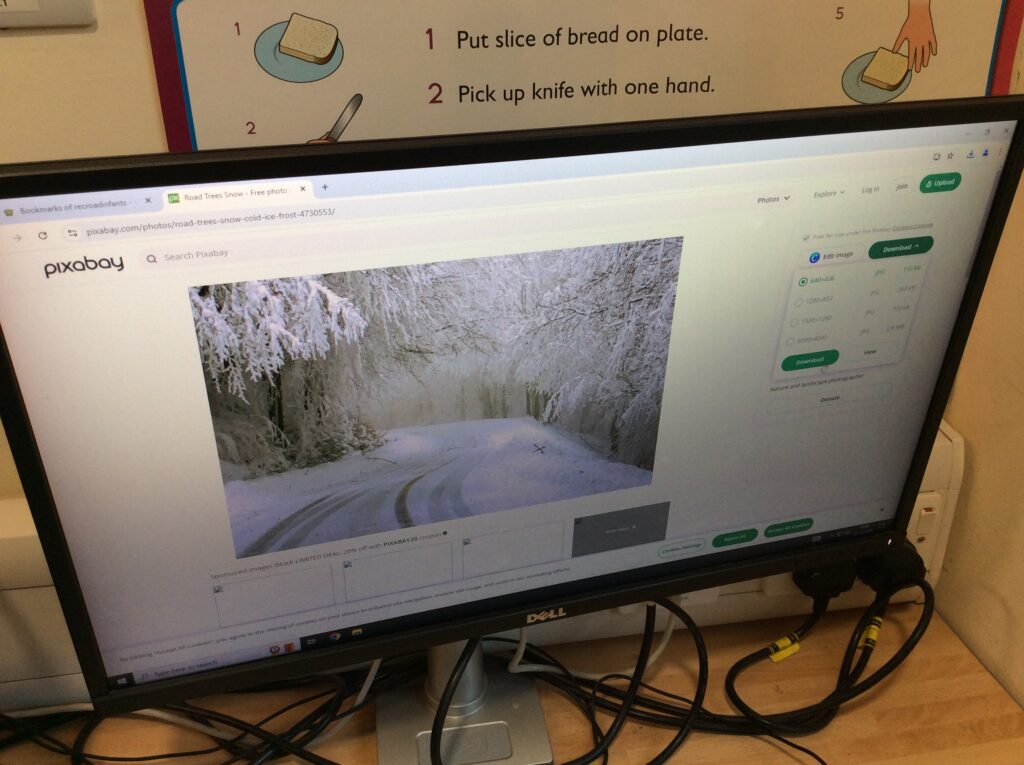 Using the search function we looked for images with the title Christmas. We chose the image by clicking on it and then downloading the smallest size image directly to our download folder in our computer book (folder). We downloaded a maximum of 12 images with our partner so that we had plenty of choice next week when we continued our card. To ensure we had done it all correctly we looked in our downloads folder and viewed all the images and deleted any that we decided we no longer wanted.